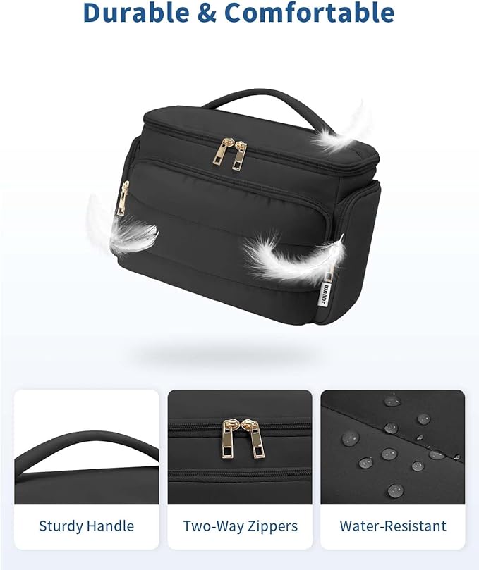WANDF Travel Toiletry Bag for Women, Wide-open Large Makeup Bag with Handle, Puffy Makeup Organizer for Toiletries, Cosmetics, Accessories, Essentials (Black)