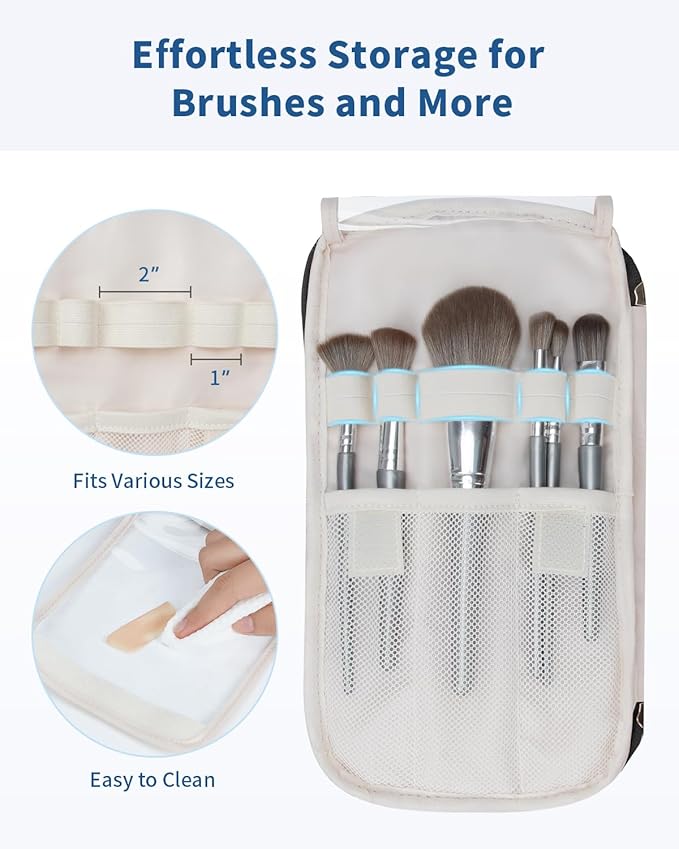 - 【Effortless Organization】This make up bag features two side zip pockets and a large front zip pocket with two mesh sleeves, perfect for organizing all your travel essentials. Store personal care items, beauty tools, or hair accessories in designated pockets, keeping everything neat and easily accessible.