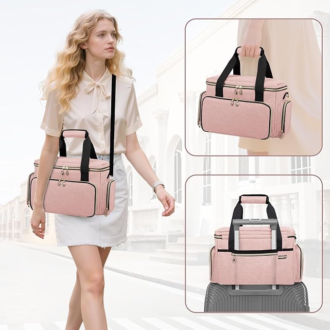 - Easy to Carry: Adjustable shoulder straps and sturdy top handles make it convenient for travel. The makeup case also has luggage straps on the back that can be attached to a suitcase, making it suitable for business trips, vacations, and outdoor activities