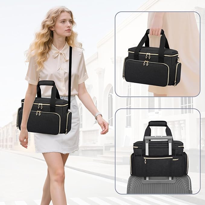 - Easy to Carry: Adjustable shoulder straps and sturdy top handles make it convenient for travel. The makeup case also has luggage straps on the back that can be attached to a suitcase, making it suitable for business trips, vacations, and outdoor activities
