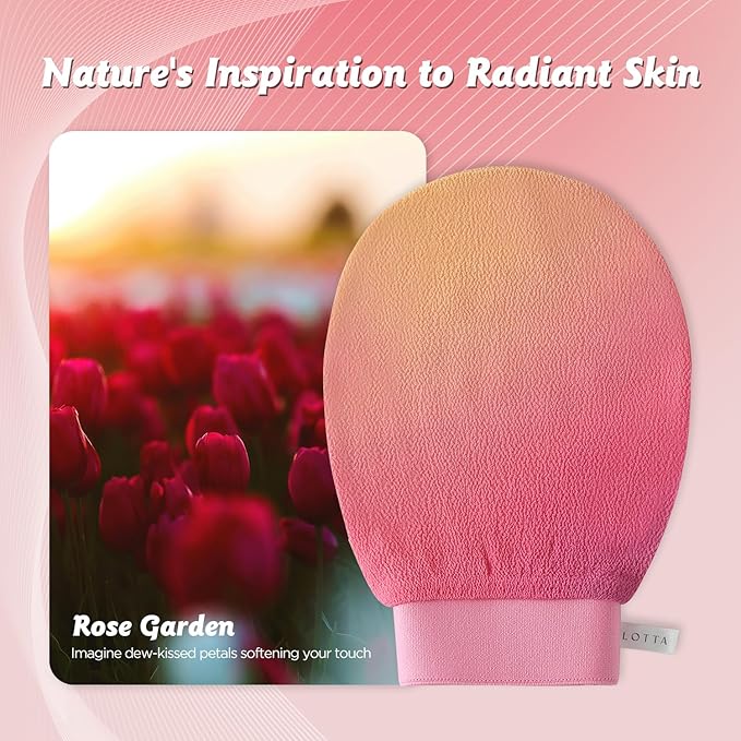 LOTTA Dreamy-Glow Deep Exfoliating Glove - Vegan Dead Skin Removal Body Scrub Mitt Bath Washcloth for Women Shower Exfoliation (Rose Garden)