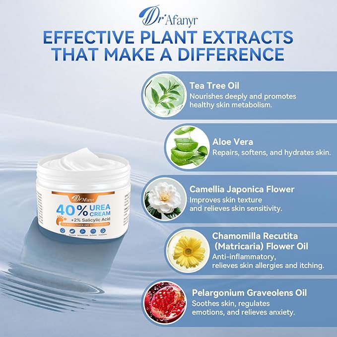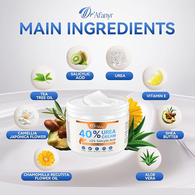 - Safe & Gentle: Using safe and gentle ingredients without adding harmful chemicals, our urea cream allows you to experience effective skin renewal. The 40% urea deeply moisturizes and nourishes, while 2% salicylic acid gently exfoliates and shea butter soothes, reducing calluses and enhancing skin softness